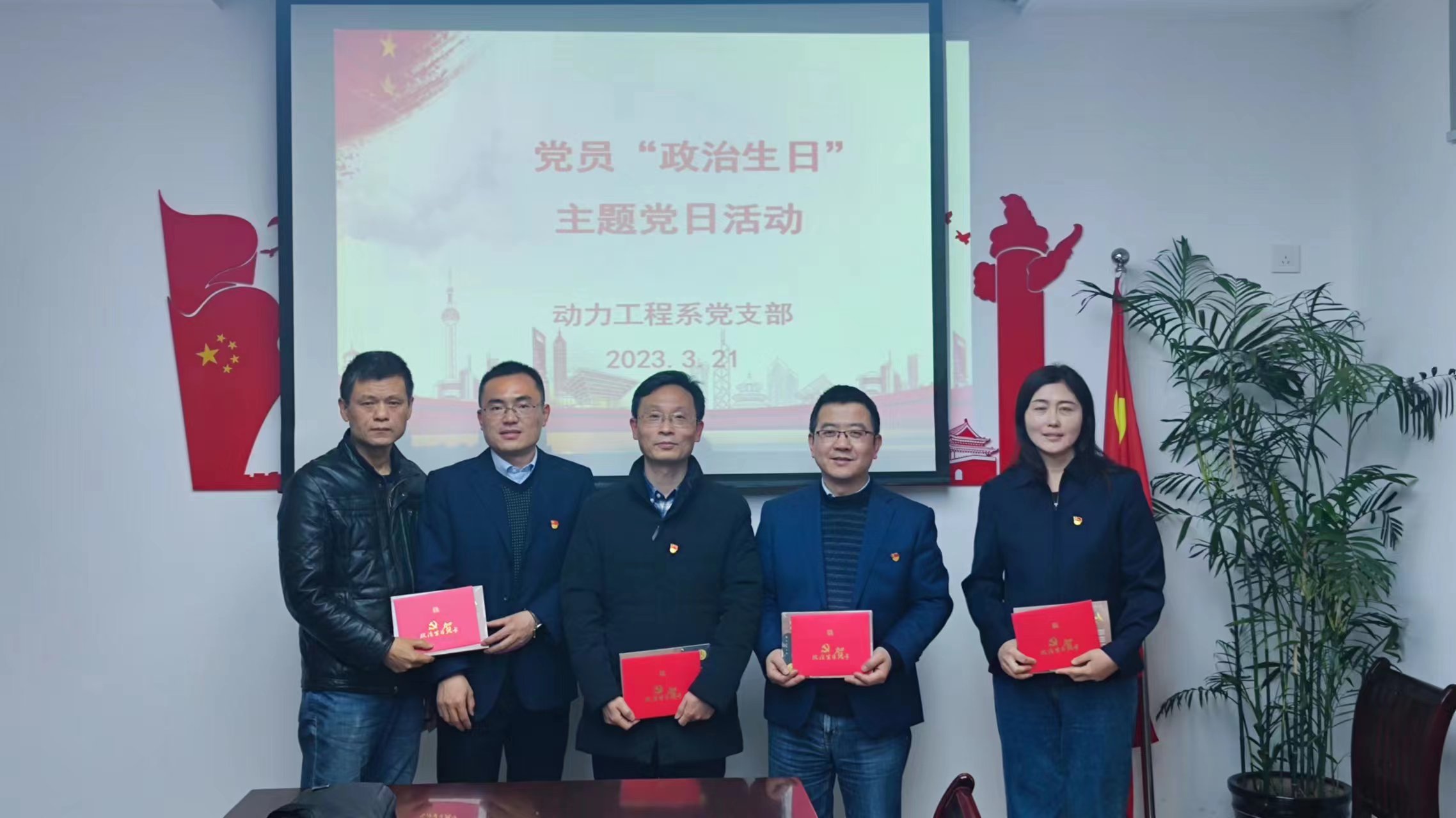 3月21日下午,动力工程系党支部召开了一次别开生面的主题党日活动——给党员过“政治生日”。给党员过“政治生日”是一项严肃的组织生活,通过重温入党经历,引导党员自觉牢记党员身份,永葆初心,不断严格要求自己,发挥先锋模范作用。动力工程系四位党员老师,马宏(党龄25年)、李铭(党龄23年)、周柏松(党龄11年)和魏佳佳(党龄9年)都是在3月份转为正式党员的。