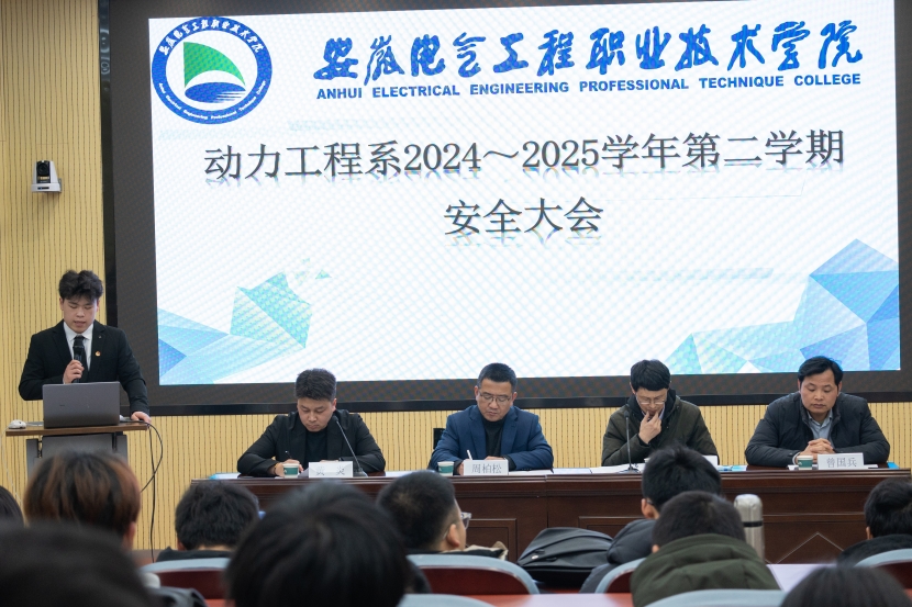 2025年3月6日,安徽电气工程职业技术学院动力工程系在南区100报告厅召开了2024-2025学年第二学期学生安全大会。会议由黄炎主持,系部主任、系党总支书记、系部副主任、辅导员以及动力工程系23、24级在校生参加了此次会议。