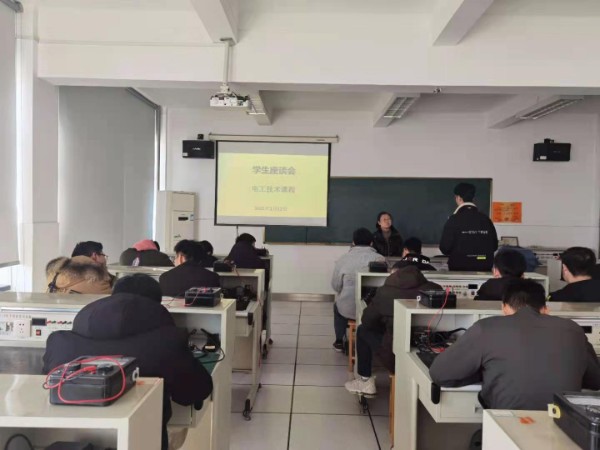 各班同学积极发言,表达了自己的意见和建议,同学门反映电工技术课时较少,有些内容不能够详细讲解,希望增加课时,增加实验学时,部分同学还反映刚开始学习很认真,随着内容的累积,难度越来越大,对知识的理解越不深刻,理论联系实际能力不足等。电工技术教研室教师就学生的意见和建议进行了解答。希望同学们努力学习,遇到不懂的问题及时询问老师。最后教研室主任陈晶教师作了总结。
