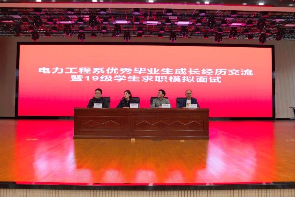 4月13日下午,安徽电气工程职业学院电力工程系组织开展的优秀毕业生经验交流会在食堂三楼礼堂举行。本次交流会邀请到四位来自电力系各个专业的优秀毕业生与同学们分享自己的亲身经历和收获的经验。会议刚开始,电力系周书记对大家进行了动员,告诉大家要树立正确的就业观,学好专业知识,多参加社会实践,为成功就业做好前期的准备。四位学长学姐畅所欲言,讲述了自己对专业、对工作、对社会和对人生的感悟,电力系19级、20级学生到场聆听。