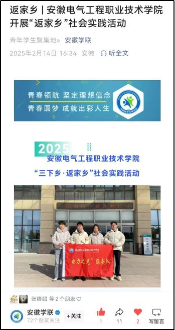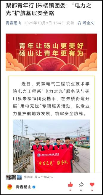 “电力之光”党建品牌内涵持续丰富,影响力显著增强。品牌载体建设不断深化,“电力之光”服务队秉承“服务同学、服务学院、服务社会”宗旨,利用专业特长深入乡村社区开展安全用电宣讲、义务检修等服务,年内收到地方政府、团委感谢信三封,生动实践了学院的社会责任。品牌文化建设成果丰硕,修订发布“电力之光”荣誉榜单,编印《“电力之光”服务队活动纪实》,升级文创产品与歌曲,充分展现了师生昂扬向上的精神风貌。品牌传播效应日益凸显,系部师生在“五型”美好校园建设中的优异表现与感人故事,获省教育厅网站、安徽日报客户端、省学联等省级媒体宣传报道,有效提升了学校的社会美誉度与专业影响力。