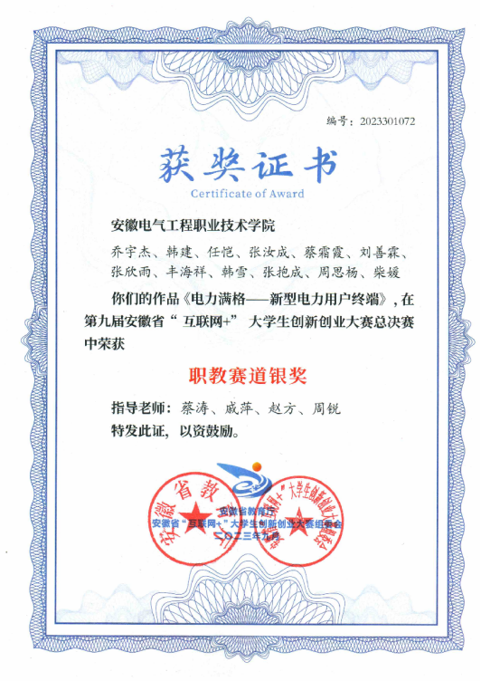 以赛促建,强师赋能,全面提升育人质量。2023年度系部周密部署,教师积极参与,在各类技能竞赛中屡创佳绩,累计获得省部级以上奖项十余项。在安徽省教师教学能力大赛中,参赛项目《特高压输电线路运行与检修》凭借前沿的专业方向和出色的教学实施能力荣获省赛一等奖,并作为优秀案例在省赛闭幕式上展示,也顺利的突围国赛选拔赛进入国赛,实现了这一赛项的突破。系部教师指导学生参加互联网+创新创业大赛,获省赛银奖、铜奖各一项,国赛金奖、银奖各一项,“象新力杯”第二届全国大学生电力创新设计大赛三等奖,安徽省QC小组竞赛一等奖。金砖国家职业技能大赛无人机赛项中,指导学生在区域选拔赛中获二等奖。无人机项目也获得了安徽省1+X证书制度优秀案例三等奖。在学院“说专业·说课程”比赛中获得说专业组一等奖,说课程组三等奖;学院课程思政示范课比赛中获得一等奖一项,三等奖一项。