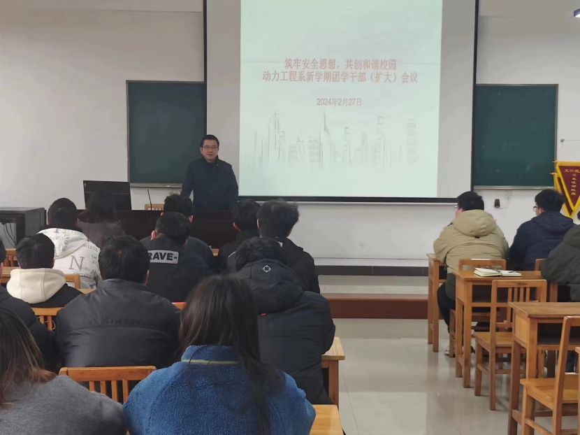 2月27日下午,动力工程系在学院南区教学楼召开新学期系团学干部(扩大)学生工作会议,系党总支书记、辅导员、全体团学干部及各年级寝室长参加了此次会议。