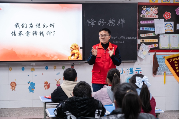 2024年3月5日是第61个学雷锋纪念日。当日下午,学生处党支部党员志愿者会同学院“善小”志愿者服务队赴葛大店小学开展课后三点半暖心教学志愿服务,以“传承雷锋精神 弘扬时代新风”为主题为葛大店小学五(2)班学生上了一堂生动的主题班会课。