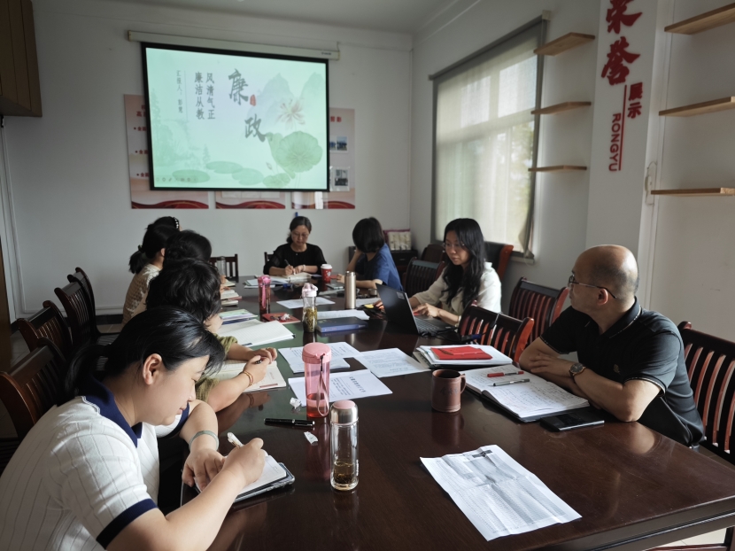 5月21日下午,思政教育部党总支在部门会议室组织开展“学党纪、明底线、强自觉、勇担当”主题党日活动,全体党员参会。