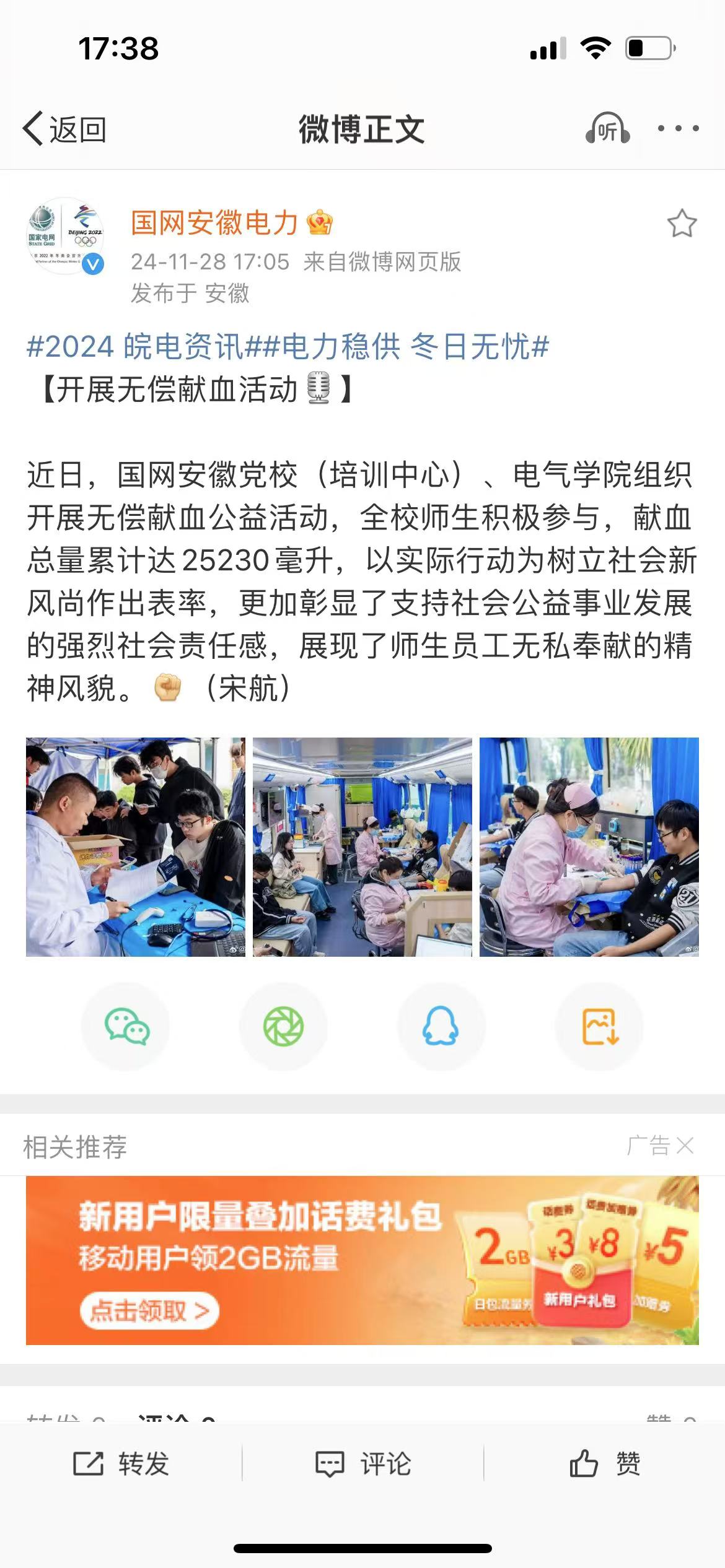【公司微博】学院开展无偿献血活动