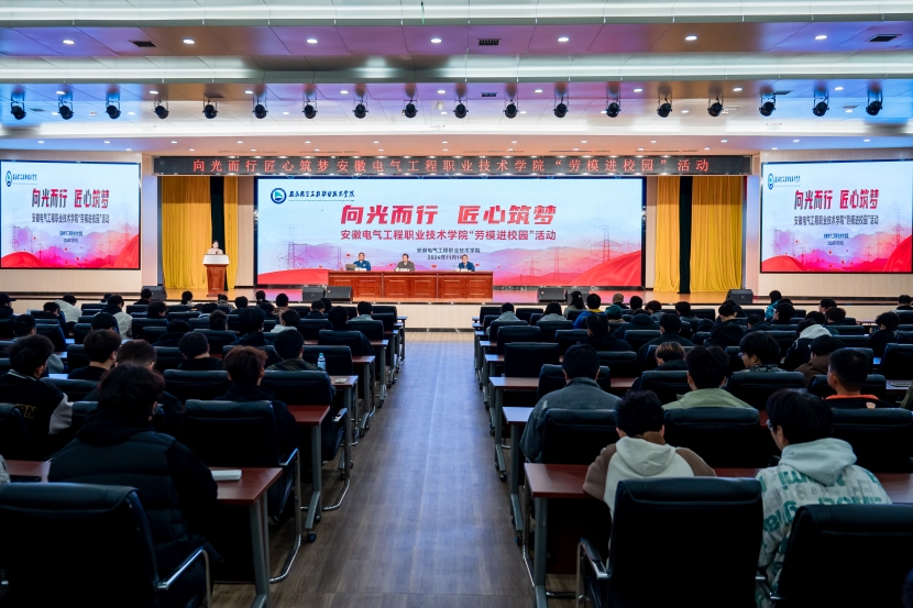 为了学习宣传贯彻党的二十届三中全会精神,全力推动学院“三教”改革,加强思政课实践教学,弘扬劳模精神、劳动精神和工匠精神,11月19日下午,学院组织开展“向光而行 匠心筑梦——劳模进校园”专题活动,特邀全国劳动模范、全国五一劳动奖章、全国技术能手、中国好人、安徽省技术领军人才廖志斌分享其奋斗故事。学院副院长房贻广、教务处处长何鹏应邀参会,思政部负责人、全体思政教师和24级学生全程聆听专家专题报告。
