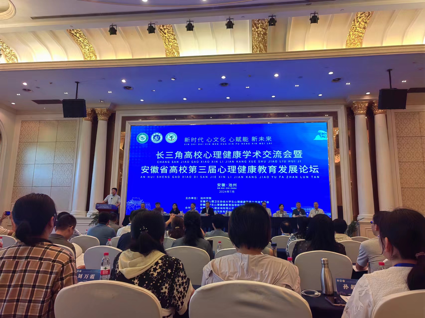 7月5日至6日,长三角高校心理健康学术交流会暨安徽省高校第三届心理健康教育发展论坛在池州顺利召开。本次会议由池州学院、安徽省心理卫生协会大学生心理健康教育与咨询专委会和安徽省学生心理健康教育指导和发展中心主办,来自长三角地区及北京、广东、陕西等省市的近400位专家学者参与本次会议,我院教师汪邦银、孙义星、鲍红雨等应邀参加本次会议。