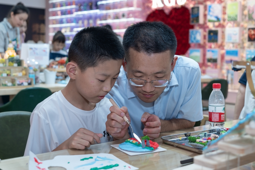 手工课堂设置了奶油胶、搪胶和蜡烛等材质的手工用品的学习及制作,以及肌理画和油画的临摩绘制,孩子们在家长的协助下,专心细致地完成了手机壳、文具盒、抽纸盒等物品和装饰与风景、动物等绘画作品。活动锻炼了孩子们的观察动手能力和专注力,增强了家长们与孩子之间的沟通互动能力,让家长和孩子共同面对挑战,在相互配合的同时,增进了亲子关系,提升了亲子双方的身心健康水平。