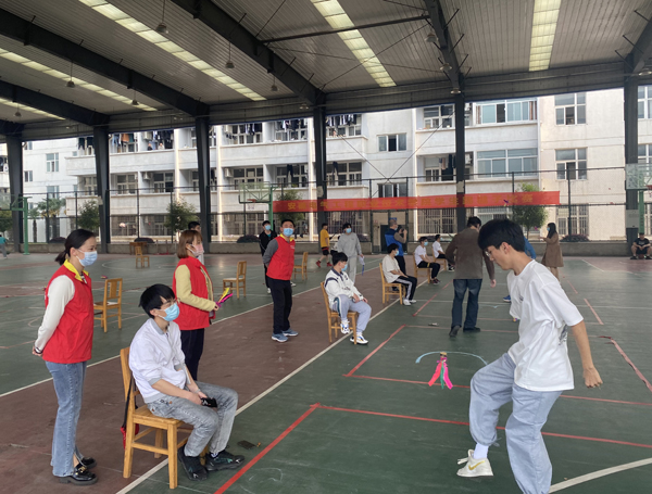 因为参赛队伍较多,为了保障比赛顺利进行,基础思政党支部党员老师们,以共产党员志愿者的身份参与到比赛服务当中。有的当了裁判认真计数,有的协助比赛组织忙前忙后,有的在为选手加油助威,两个多小时的比赛过程中,到处都有他们忙碌的声影。学生和老师们在比赛间隙愉快的交谈着。