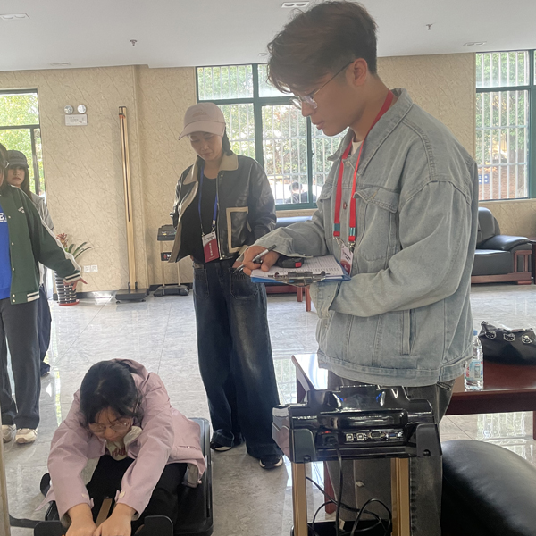 本次体测抽查由安徽师范大学倪瑞芳教授带队。抽查工作组按照事先随机抽取的名单,分组对学生进行了跑步、坐位体前屈、肺活量等标准项目测试。