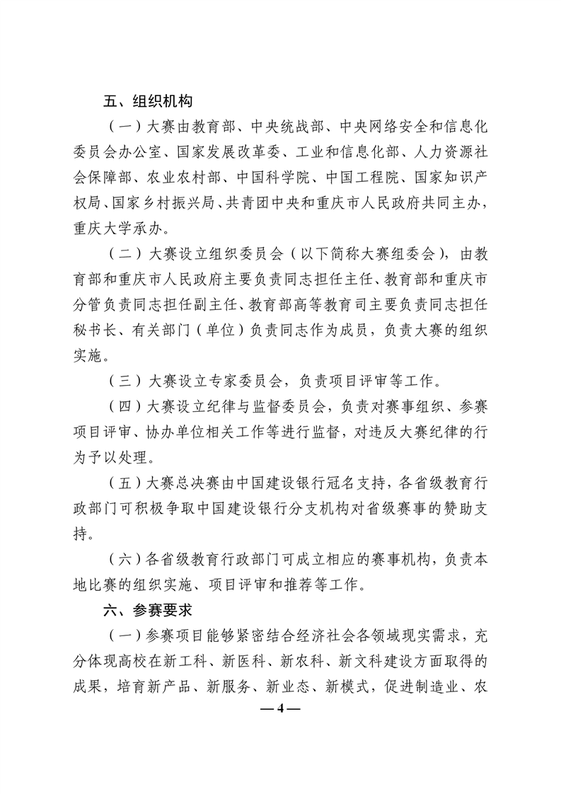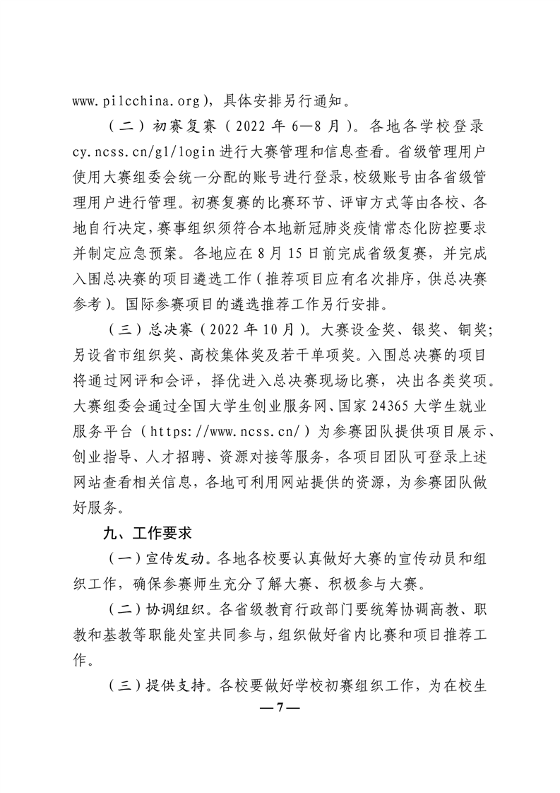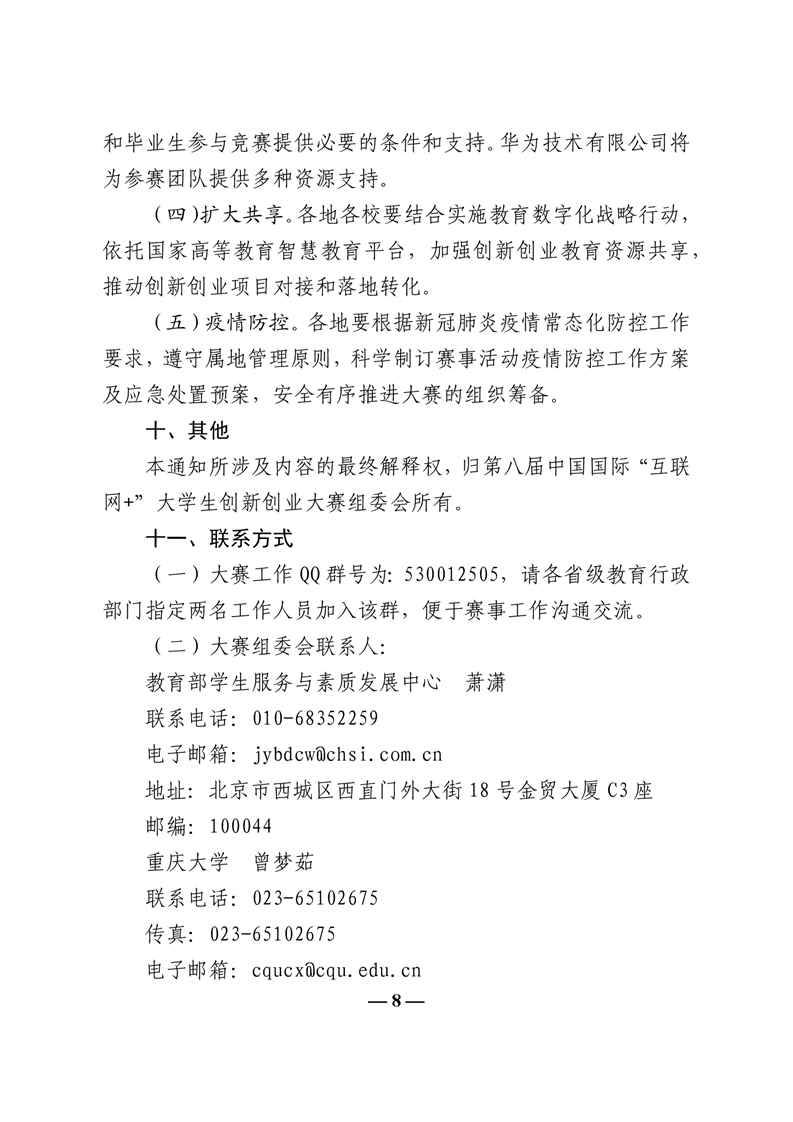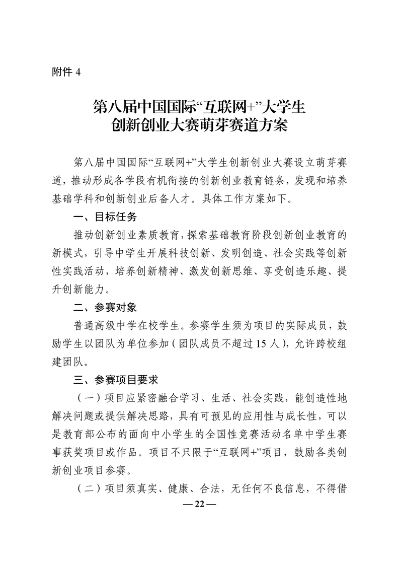 教育部关于举办第八届中国国际“互联网+”大学生创新创业大赛的通知 (教高函[2022]2号)