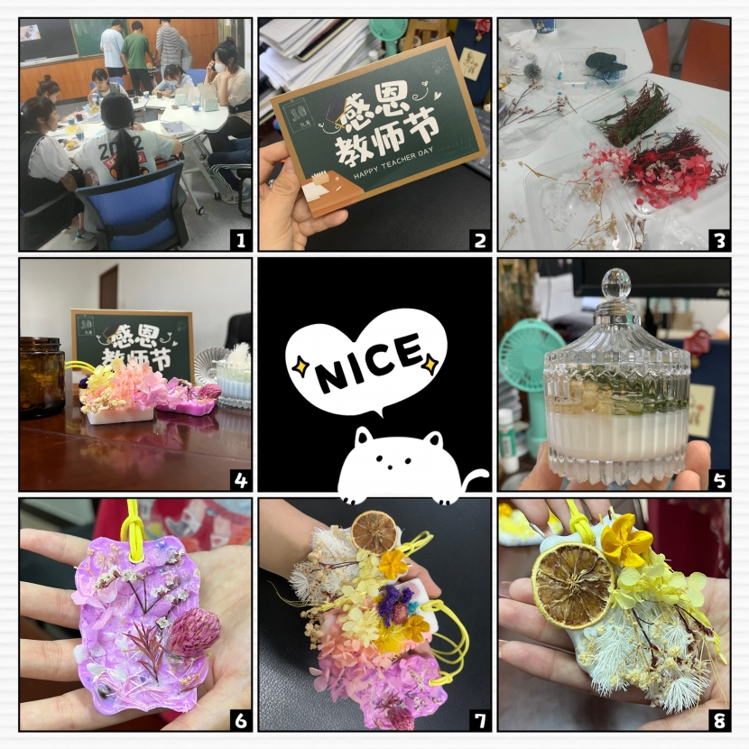 笔端生芳华,润物谢恩师。9月8日下午,学生们利用课余时间精心撰写了多份教师节贺卡,并齐心协力制作出多种不同样式的香薰摆件,在9月9日第一节课前送至老师们的手中,以此来表达对老师的尊重与感恩。