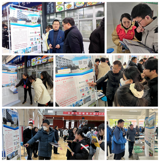 分类招生“抢头彩”。分类考试招生宣传是学院开年第一项重要工作。学生处精心策划谋划,制定宣传方案,准备宣传资料,线上线下同步推进。线上在微信公众号、招生就业网推出系列宣传,通过内网邮箱发布招生简章,开通招生热线接听电话咨询。线下招生与安徽青年报合作,发动全员开展现场招生宣传,学生处与各系部负责人带队,兵分三路,走进乡村中学,现场接受考生咨询,与考生开展面对面交流。招生人员冒着风雪,克服严寒,进乡村,走基层,将招生信息第一时间向考生进行宣传。