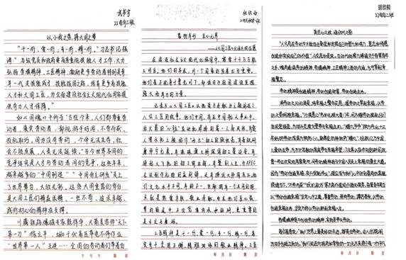 本次活动不仅锻炼了同学们的写作能力,更让每位同学深入思考,在离开校园步入社会后,不论从事什么岗位的工作,成为的是脑力/体力劳动者,都应该像大国工匠一样,勇于在平凡的岗位创造不平凡与奇迹,让劳动光荣、创造伟大成为时代的最强音。
